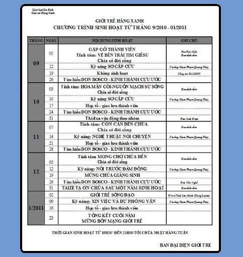 CHƯƠNG TRÌNH SINH HOẠT GIOITRE DONBOSCO HÀNG XANH